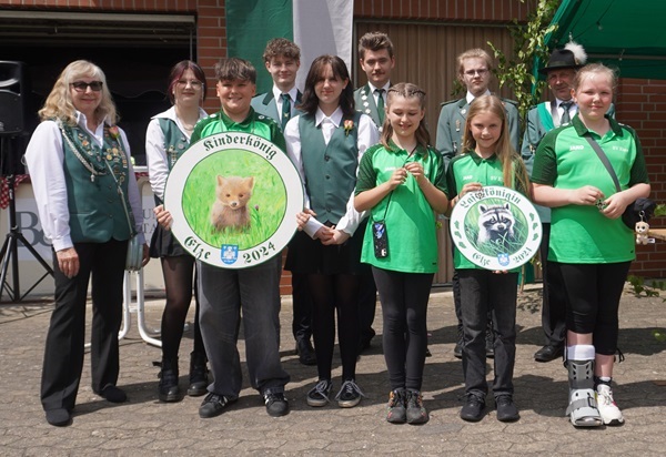 Am Samstag traten die Schützen auf dem Hof des Gasthauses Goltermann an um die Majestäten 2024 zu proklamieren. Mit den Musikcorps Langenforth zusammen setzte sich der Festzug dann in Bewegung um die Kinderkönigsscheibe für Johann Koziolek an der Pfarrscheune in Elze anzubringen, da der diesjährige Kinderkönig aus Bennemühlen kommt und der Weg dorthin zu lang gewesen wäre. Zu einem späteren Zeitpunkt wird dann die Kinderscheibe am Giebel des Wohnhauses von Johann Koziolek angebracht.