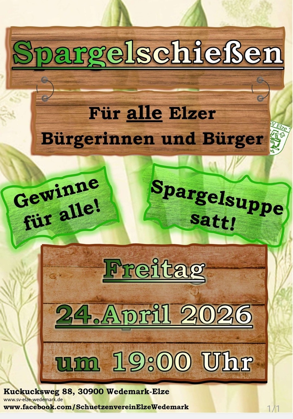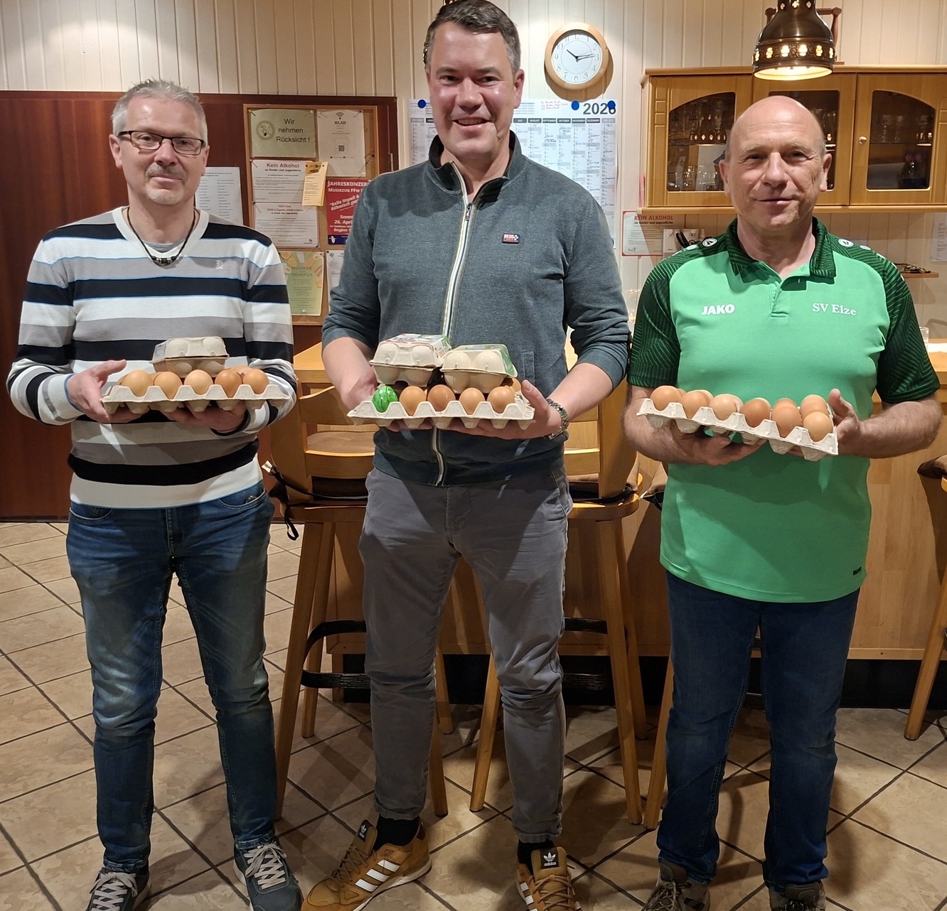 Am Gründonnerstag lud der Schützenverein Elze zum traditionellem Eierschießen alle Elzer Bürger/innen und seine Mitglieder ein. Mit über 60 Teilnehmer war das Schützenhaus gut besucht. Neben dem Eierbraten fand der Wettkampf unter fachkundiger Aufsicht statt. Die besten Teiler waren ausschlaggebend für die Platzierungen und jeder Schütze erhielt einen Eierpreis. Mit einem hervorragenden Ergebnis setzte sich Florian Roth vor Ralf Leseberg und Dirk Müschen an die Spitze. Das nächste Highlight - das Spargelschießen - findet am 24.04.2026 um 19.00 Uhr für alle interessierten Elzer statt.