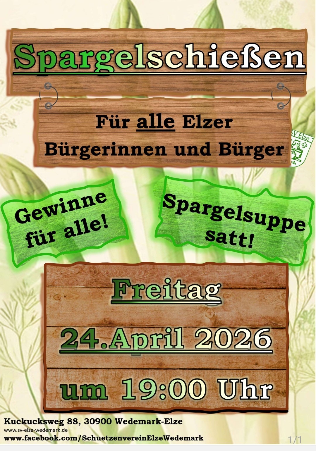 Am Gründonnerstag lud der Schützenverein Elze zum traditionellem Eierschießen alle Elzer Bürger/innen und seine Mitglieder ein. Mit über 60 Teilnehmer war das Schützenhaus gut besucht. Neben dem Eierbraten fand der Wettkampf unter fachkundiger Aufsicht statt. Die besten Teiler waren ausschlaggebend für die Platzierungen und jeder Schütze erhielt einen Eierpreis. Mit einem hervorragenden Ergebnis setzte sich Florian Roth vor Ralf Leseberg und Dirk Müschen an die Spitze. Das nächste Highlight - das Spargelschießen - findet am 24.04.2026 um 19.00 Uhr für alle interessierten Elzer statt.